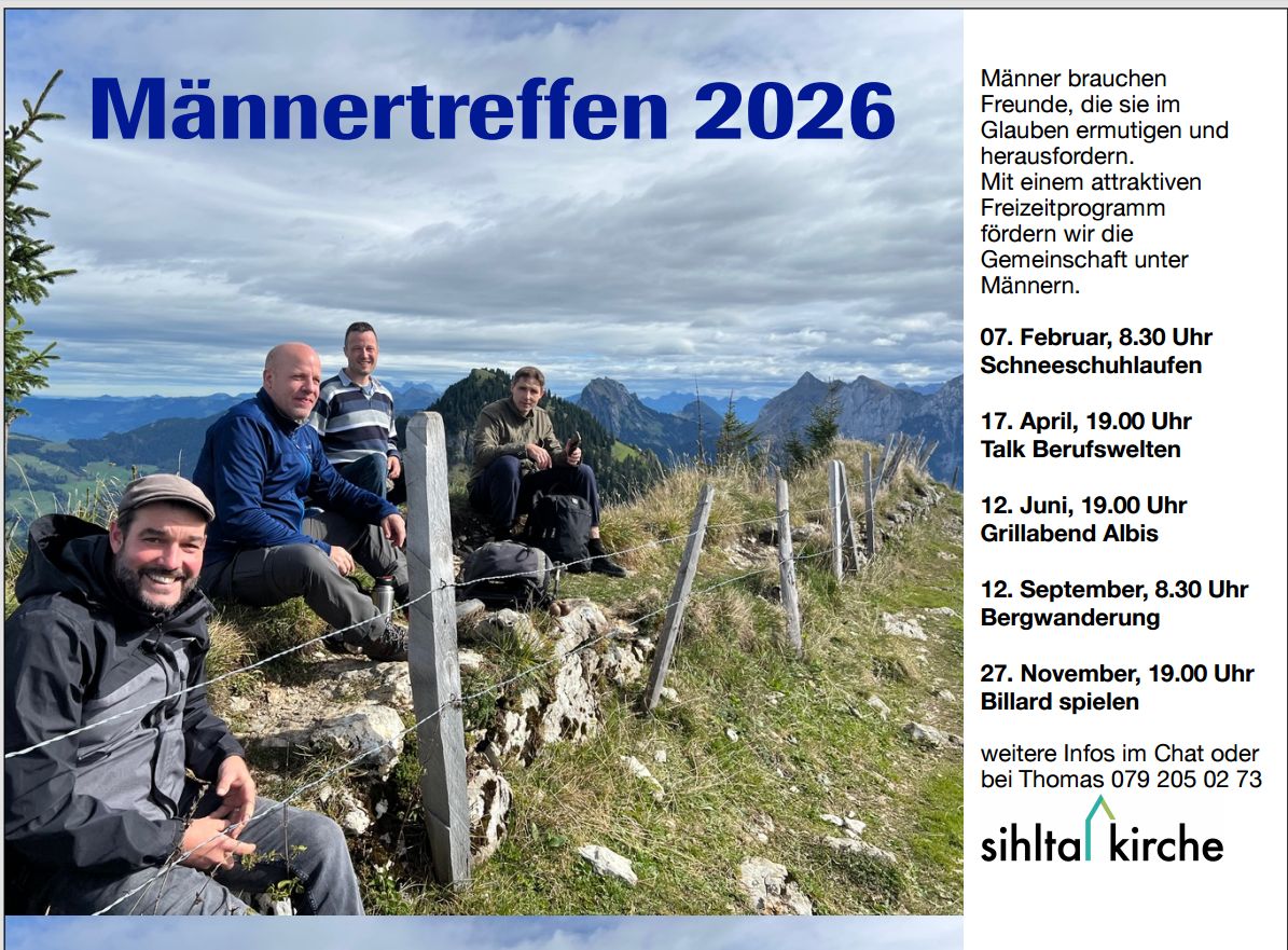 Der zweite Männertreff „Berufswelten“ musste leider abgesagt werden. .Das Thema Berufswelten wäre nur interessant gewesen, wenn wir in einer Gruppe von min 6 Männern austauschen könnten. Mit nur einer Anmeldung wird das etwas einseitig 🤔😉. Ich freue mich auf das nächste Treffen mit Euch: den Grillabend auf dem Albis am Freitag 12.6.26 um 19.00 Uhr. Merkt Euch das Datum vor!