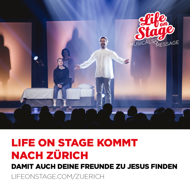 Hilf mit, deiner Region von Jesus zu erzählen Gott liebt Zürich! Du auch? Für uns steht fest: Gott liebt die Menschen in Zürich und möchte, dass sie zu ihm finden. Wünscht du dir das auch? Dann mach mit bei unserer Life on Stage-Kampagne, die vielen Menschen in deiner Region neue Hoffnung geben wird! So eine…