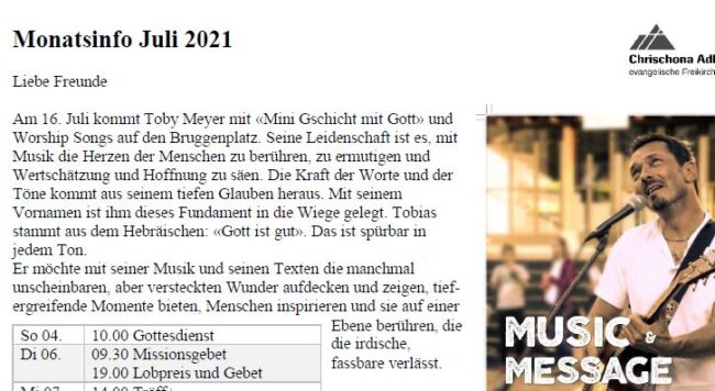 Monatsinfo Juli